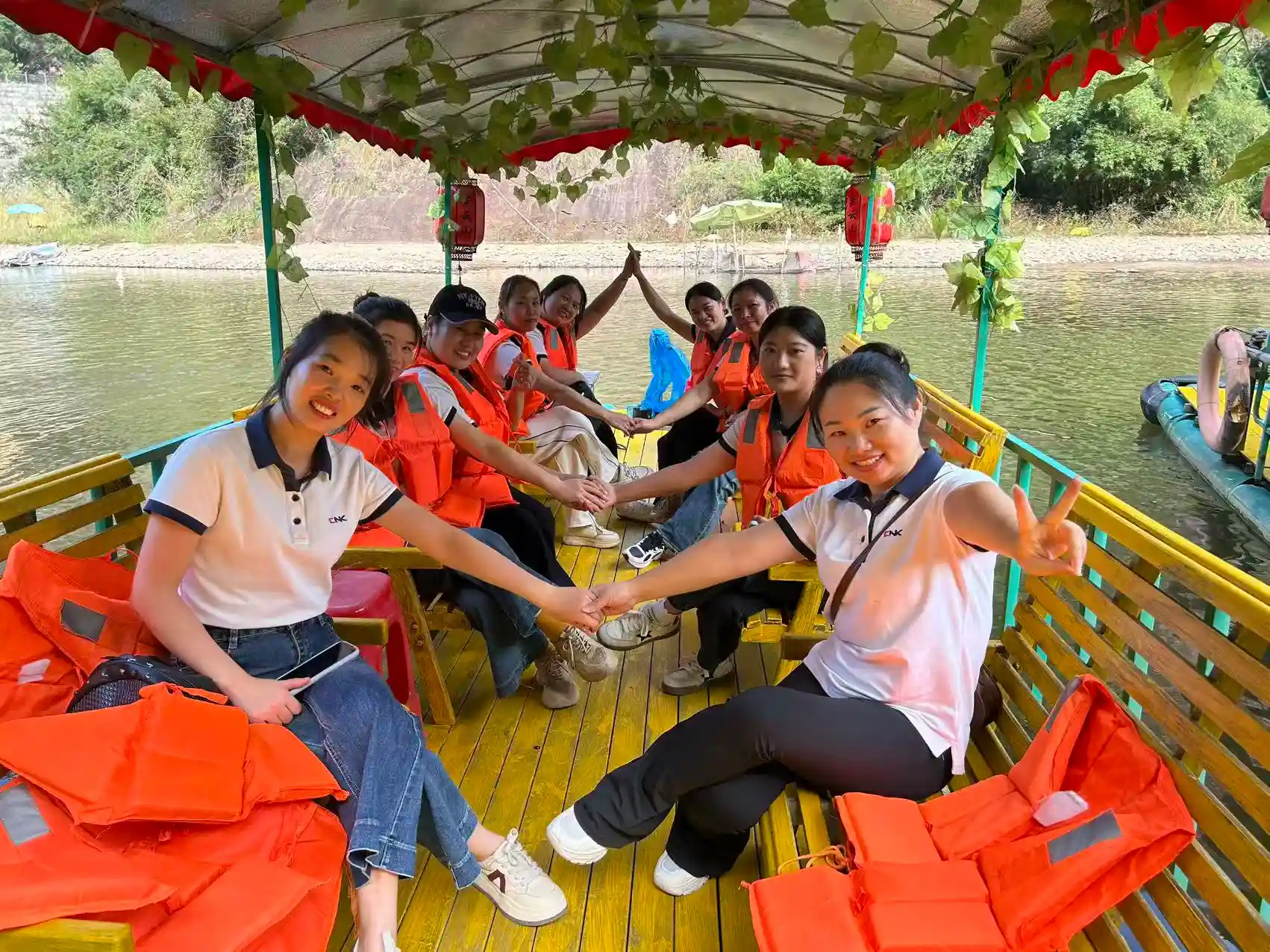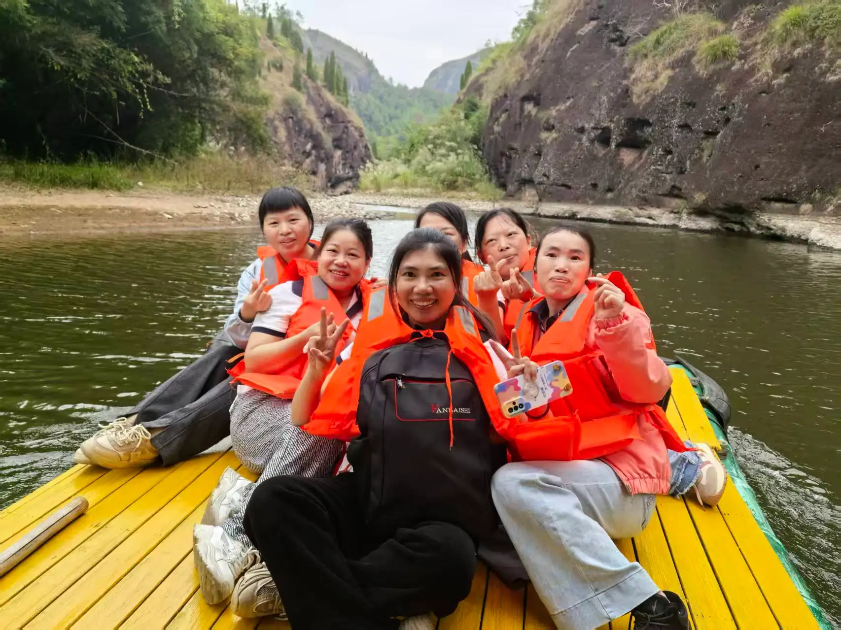 Arratsaldeko ordutegia lasaiagoa zen. Talde osoa banbuzko baltsetan igo zen gurutzaldi eszeniko batean paisaia harrigarriko hamar litan zehar. Danxia mendien eta esmeralda uraren artean irristatuz, paisaia pintoreskoa miresten zuten, non "mendi berdeak bekain ilunak bezala eta ur garbiak zeta bezala isurtzen diren". 3,2 kilometroko ur-ibilbidean denak lasaitu ziren, naturaren lasaitasunean eta edertasunean murgilduz.