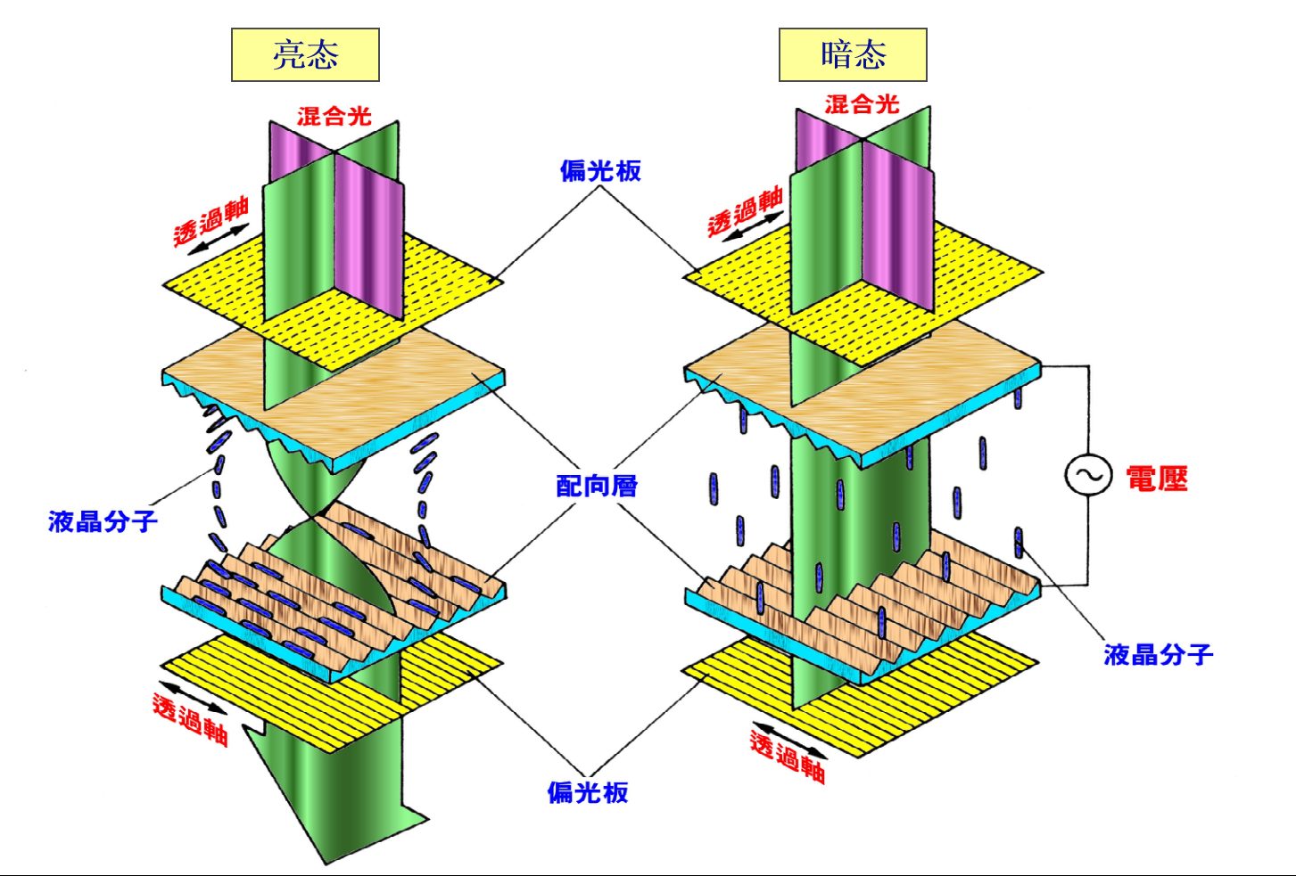 Pantaila positiboaren TN motako erantzun fotoelektriko mekanismo honek bistaratzeko grafiko konplexuak ahalbidetzen ditu pixel bakoitzaren tentsioa zehatz kontrolatuz.