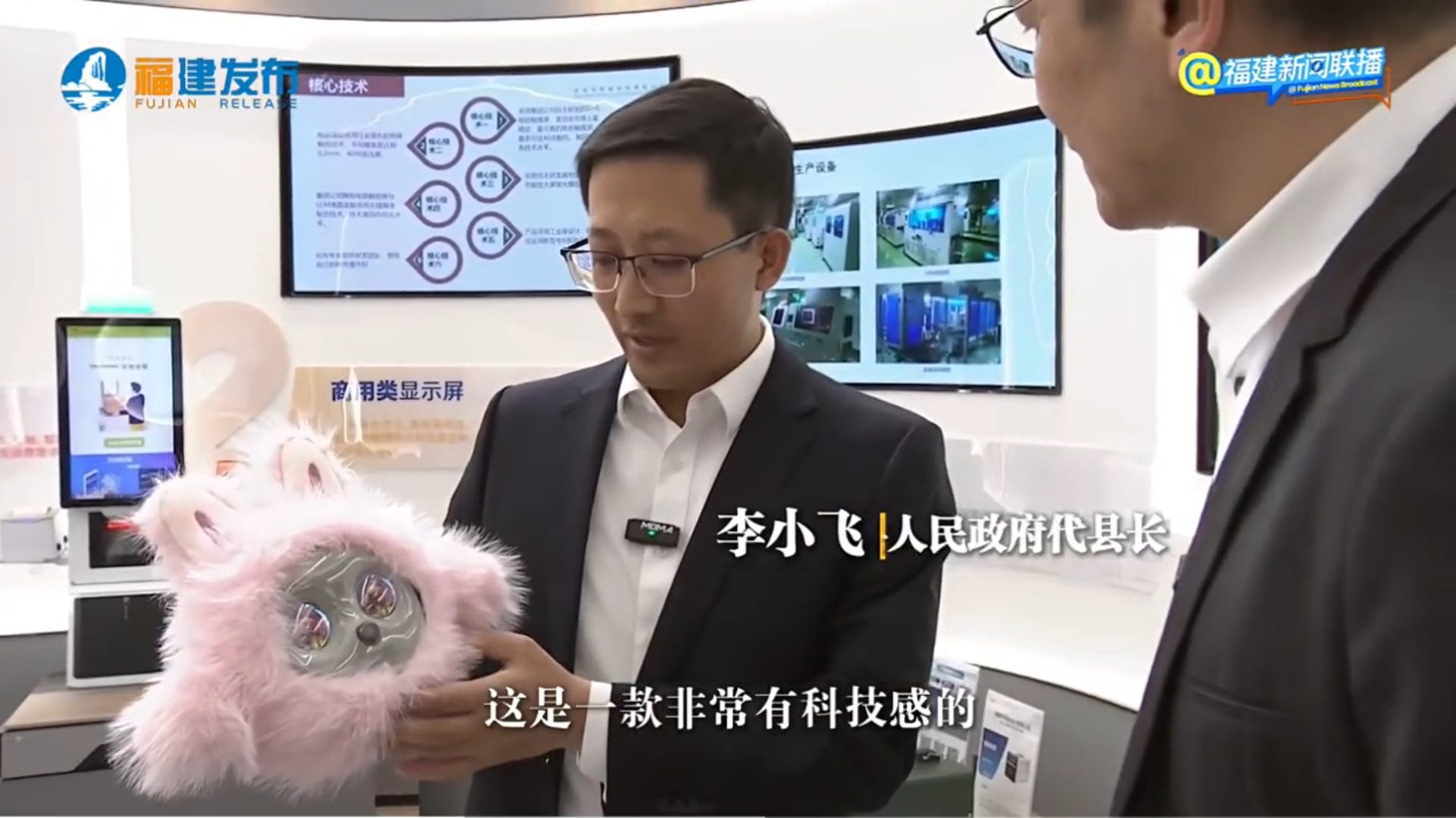 Duela gutxi, Fujian TV News-ek "Chain Reaction Fujian: County Chiefs Speak" eskala handiko hedabide telesailaren estreinaldiaren berri eman zuen, Fujian Probintziako Industria eta Informazio Teknologia Sailak eta Fujian Irrati, Zinema eta Telebista Taldeak elkarrekin abian jarritakoa. Lehenengo atala Wuping konderrian zentratu zen, konderri menditsu txiki honek hamar mila milioi Yuan baino gehiago dituen irteera-balioa nola bultzatzen duen aztertzen duen pantaila txiki baten bidez. Programan Wuping New Display Industrial Park ikusgarria izan zen, CNK Electronics Co., Ltd.-rekin, Wuping-en pantaila-industria berrian kate maisu liderra den enpresarekin, sektore honetan eskualdeko garapenaren ordezkari onena gisa agertuz, kristal likidoen pantaila fabrikatzeko teknologia aurreratuari esker. Programan agertzen den AI robot laguntzaileak CNK Electronics-ek hornitutako oinarrizko pantaila-pantailak erabiltzen ditu.