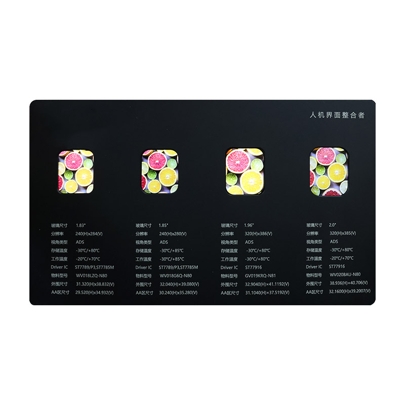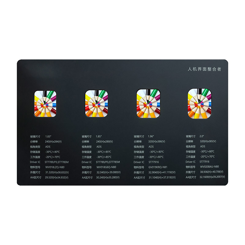 2.0 hazbeteko izkina biribila duen LCD pantaila honek ezin hobeto konbinatzen ditu estetika eta errendimendua. 320x385 bereizmeneko LCD teknologia ADS ikusteko angelua duena, ikus-entzunezko biziak eta errealistak eskaintzen ditu. Erloju adimendunetarako eta kalitate handiko audio sistemetarako bezalako gailuetarako optimizatuta dago, tenperatura zabalerako moldagarritasuna eta kontrolatzaile IC eraginkorrak epe luzerako egonkortasuna bermatzen dute. Txoko biribilen diseinu dotoreak ukitu bikaina gehitzen du, azken produktuaren ikusmenaren erakargarritasuna eta merkatuko lehiakortasuna nabarmen hobetuz.