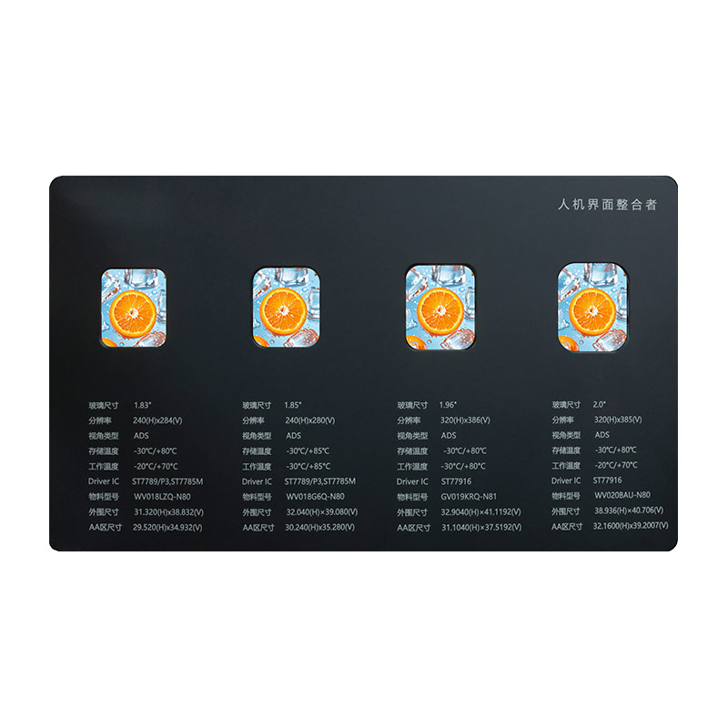1,83 hazbeteko izkina biribileko LCD pantaila honek ADS ikusteko angeluaren LCD teknologia erabiltzen du 240(H)x284(V) bereizmenarekin, ikusmen argi eta zehatzak emanez. Tenperatura zabaleko ezaugarriak -20 °C-tik +70 °C arteko funtzionamendu egonkorra onartzen du, moldagarritasun handia eskainiz. Egitura trinkoarekin eta disko eraginkor batekin, espazio-muga duten gailuetarako bereziki diseinatuta dago etxetresna elektriko adimendunak eta energia-bankuak bezalakoak, azken produktuaren erabiltzailearen esperientzia eta balioa hobetuz, bere fidagarritasun bikainaren eta irudi-kalitate zorrotzaren bidez.